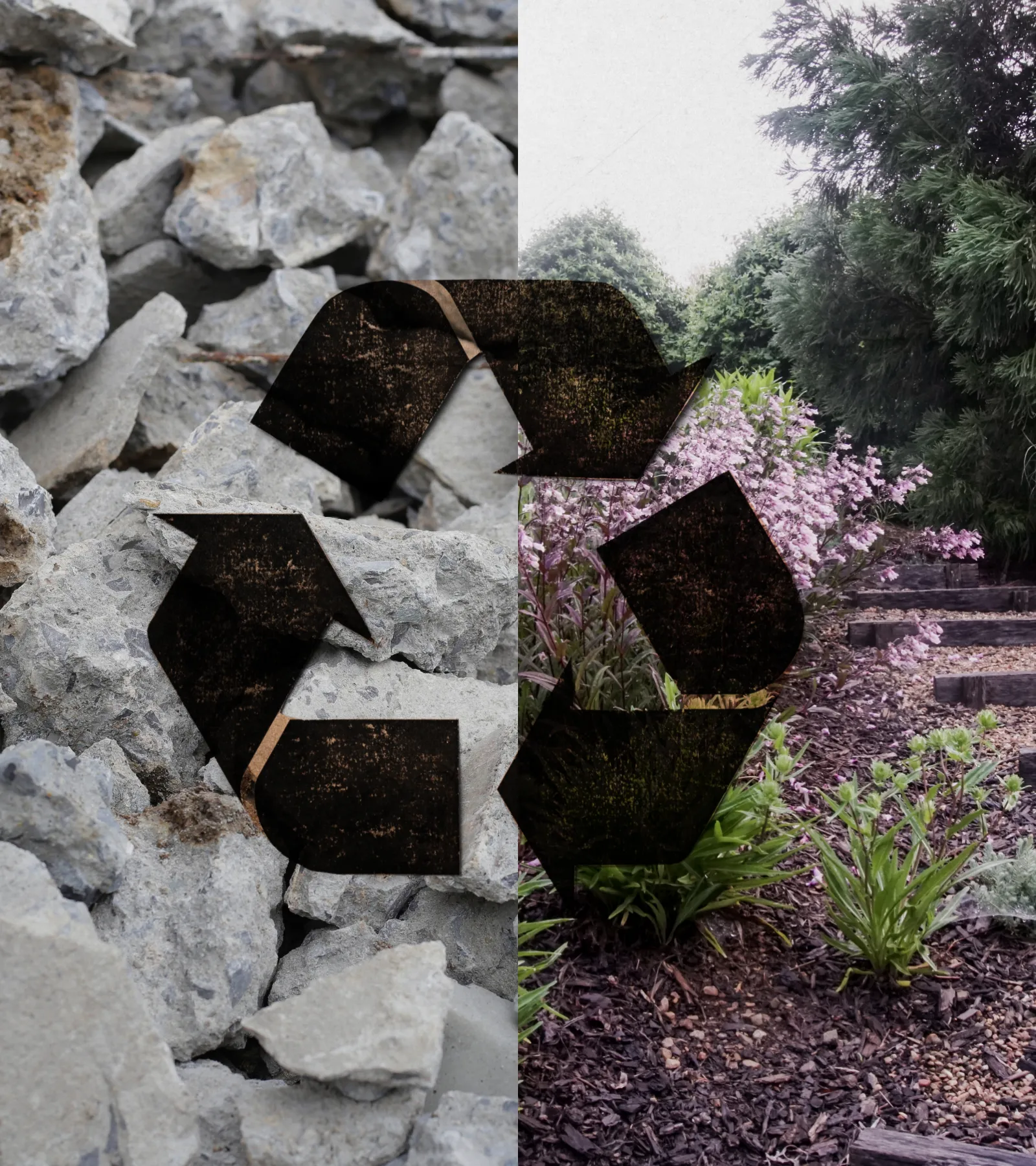 El material resultante de los derribos y escombros ofrece muchas posibilidades. Las piedras y restos de construcción, después de someterlas a un proceso de purga y limpieza, las mezclamos con otros materiales para obtener un compuesto apto para la jardinería.